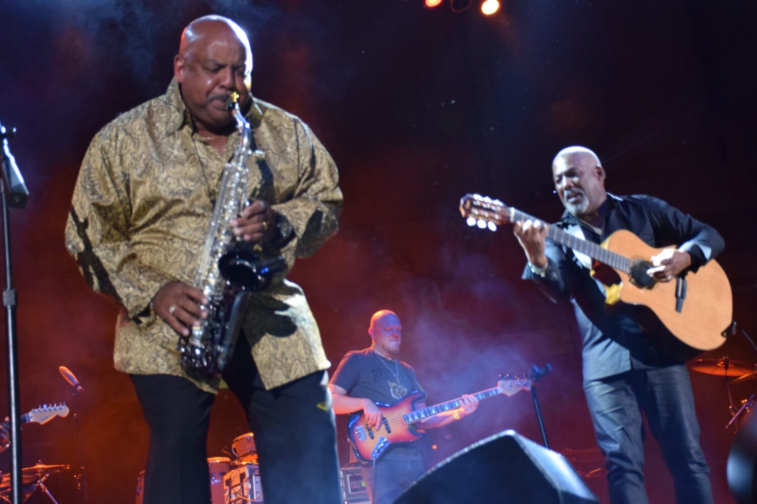 Albright and Butler were enthusiastic being the opening act with the late stragglers arriving searching for seats. Albright blew his sax and Butler gave it his all on guitar and vocals. They alternated time on the stage, also performed with each other. The highlight of their set was a Bluesy version of James Brown’s It’s A Man’s World on Tenor Sax. It had the crown immersed almost as if they were expecting The Man With the Cape on Stage. Another part of the set saw an audience Soul Train Line snaking through the front part of the floor.