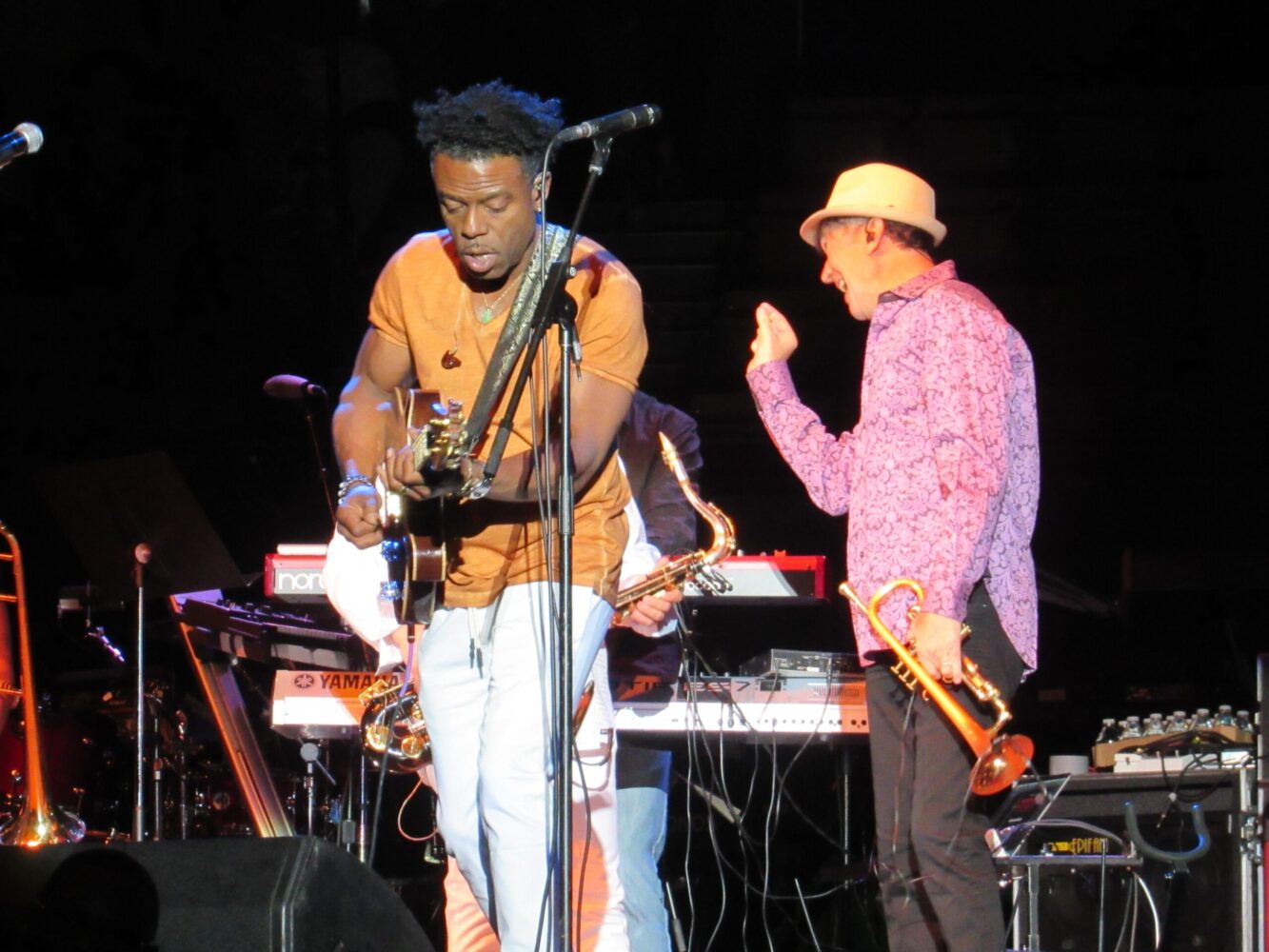 The next act, Brian Cullbertson was surely the Apex of the evening. He looked and sounded like a Ball of Red and Black Energy. He played his keyboard and trombone. His band included a very Funky Horn Section that kept up with him throughout. They tore up some Funk Classics: Brown’s I Feel Good, Kool and the Gang’s Hollywood Swinging. He then slowed the tempo with his classic “Come to Me.” He simply caressed the keyboard. The crowd was so with him you could hear people breathing. He ended with “Play That Funky Music White Boy” and played he did. He was given a Standing O with the crown hungry for more. Might not be a bad idea for him to come back and headline one of the nights in the future.