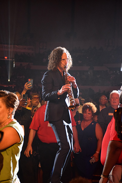 With just his very presence, Kenny G graced the audience and allowed surprised guests to take pictures before his show. When his set began, he was spotlighted on the floor in the middle of the audience. We were able to enjoy his playing up close and personal. As always, his performance was, well, very powerful. He gave the attendees the awesome sound of smooth jazz, with his amazing soprano sax. Kenny informed us that he’s been playing that same instrument since high school. (Can you believe that?) Go, Kenny!