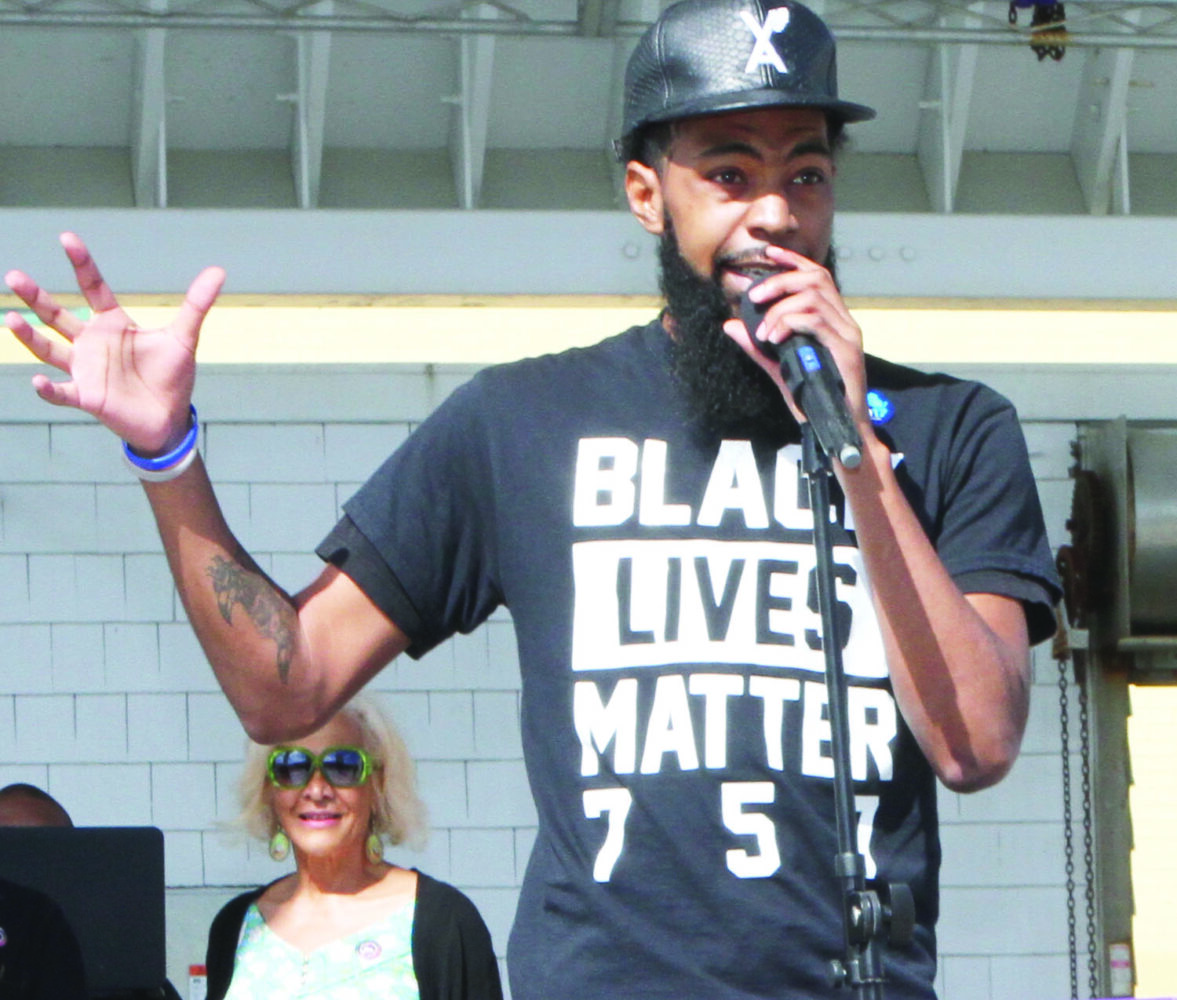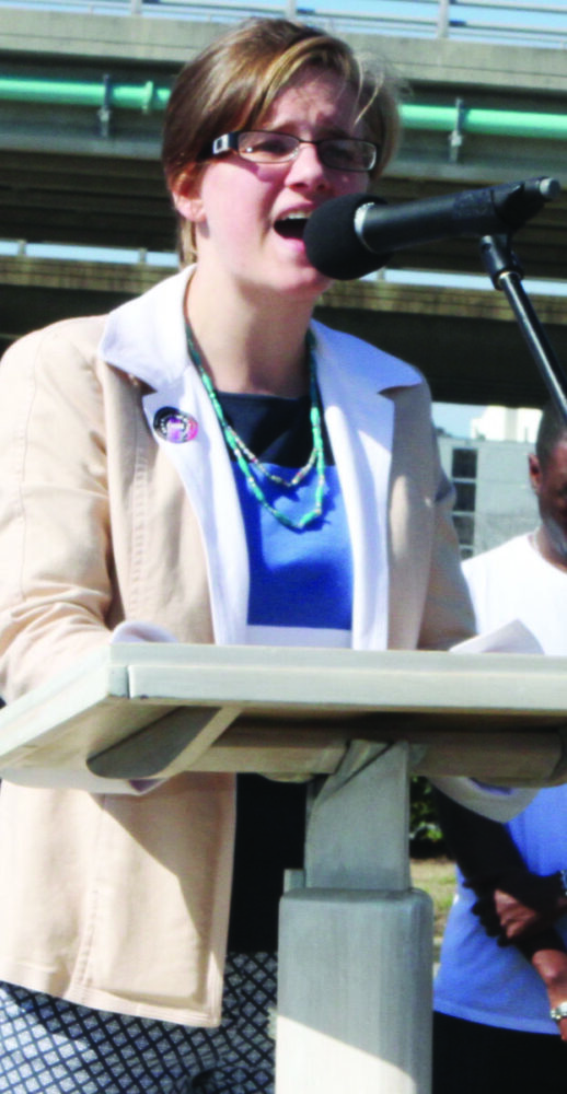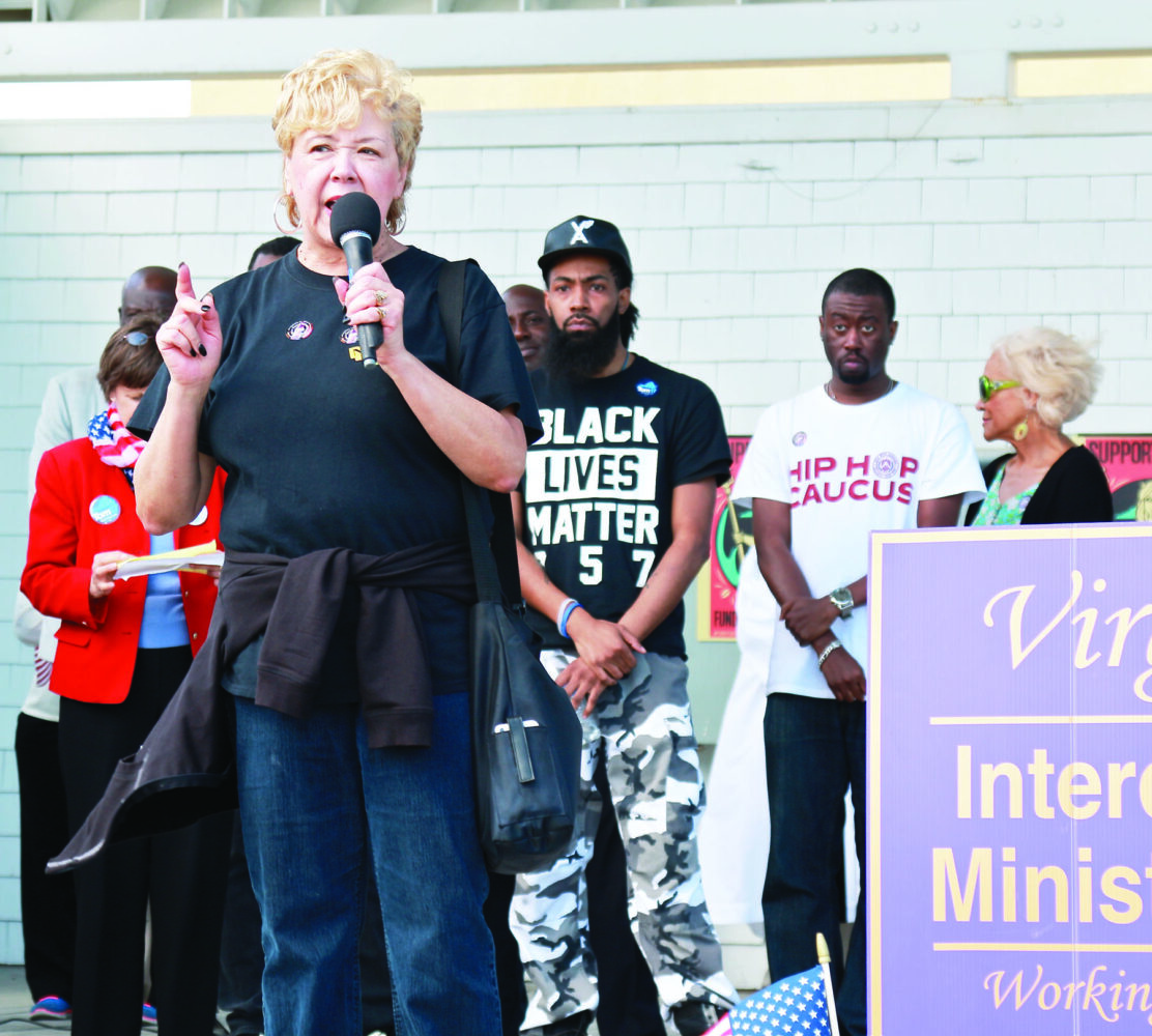 - NJG Publisher Brenda Andrews speaks at 24th St. Park rally.