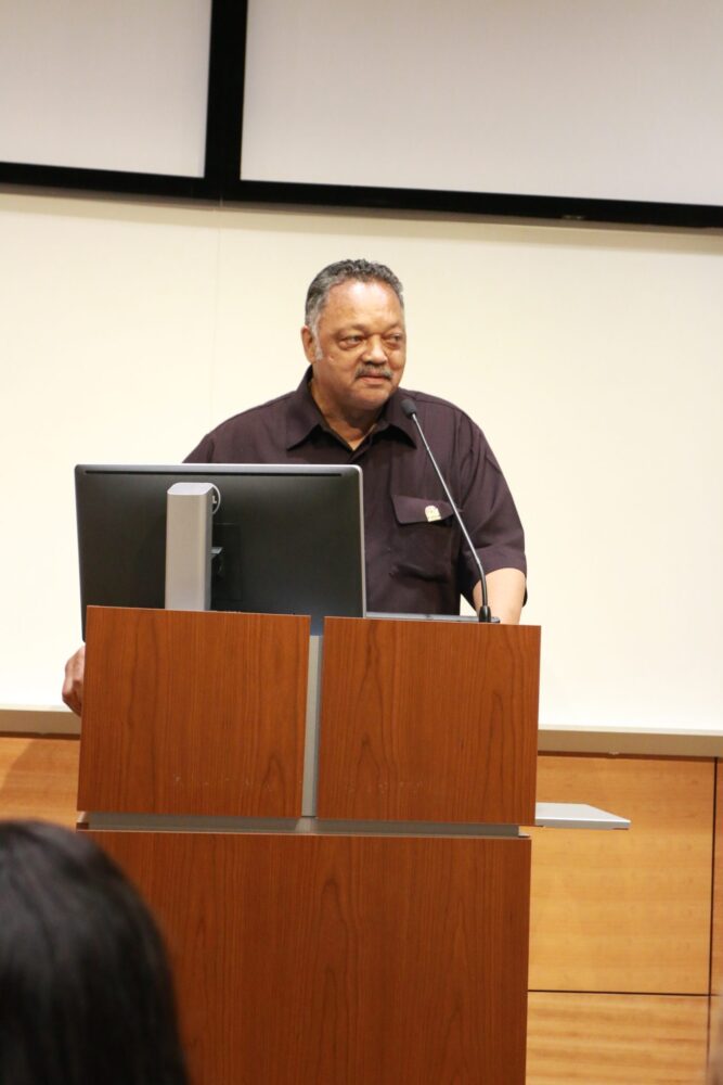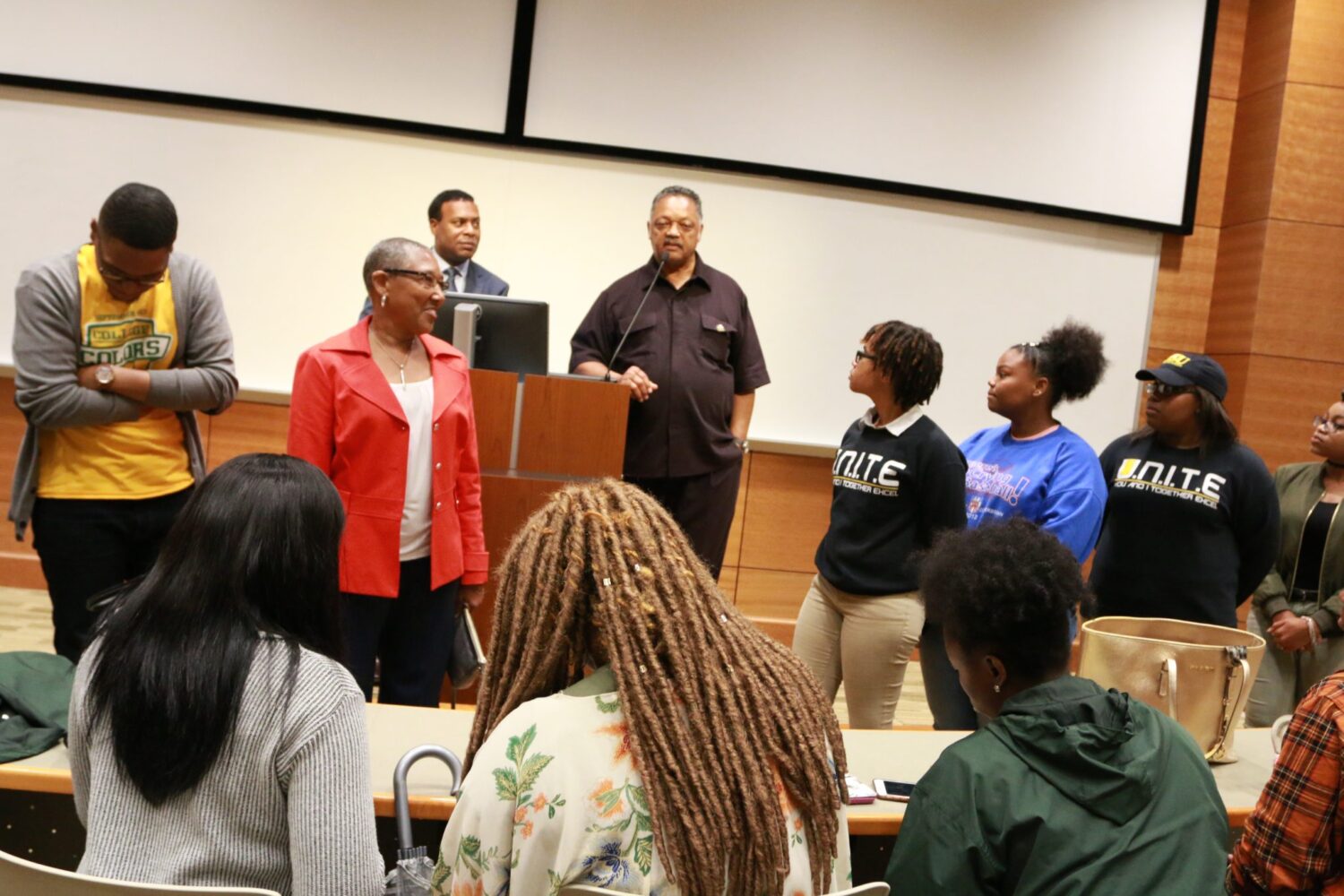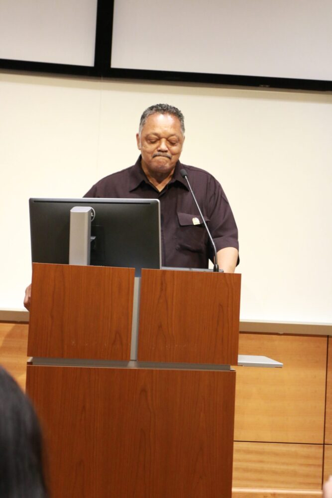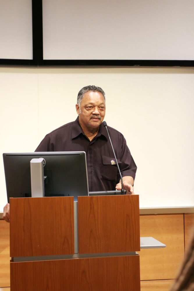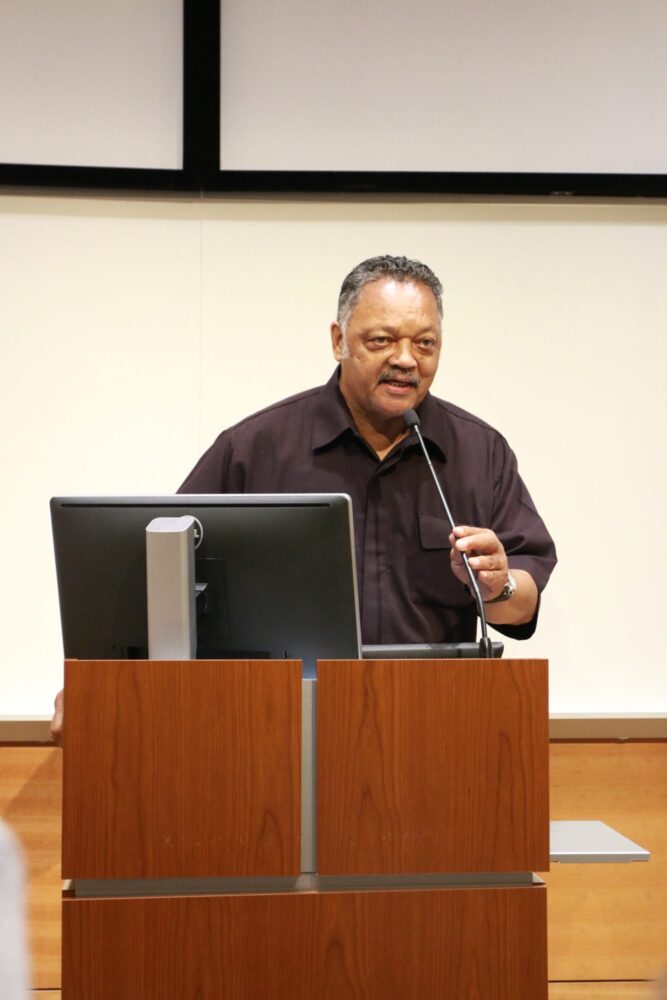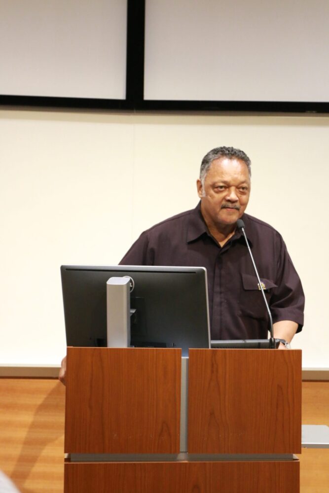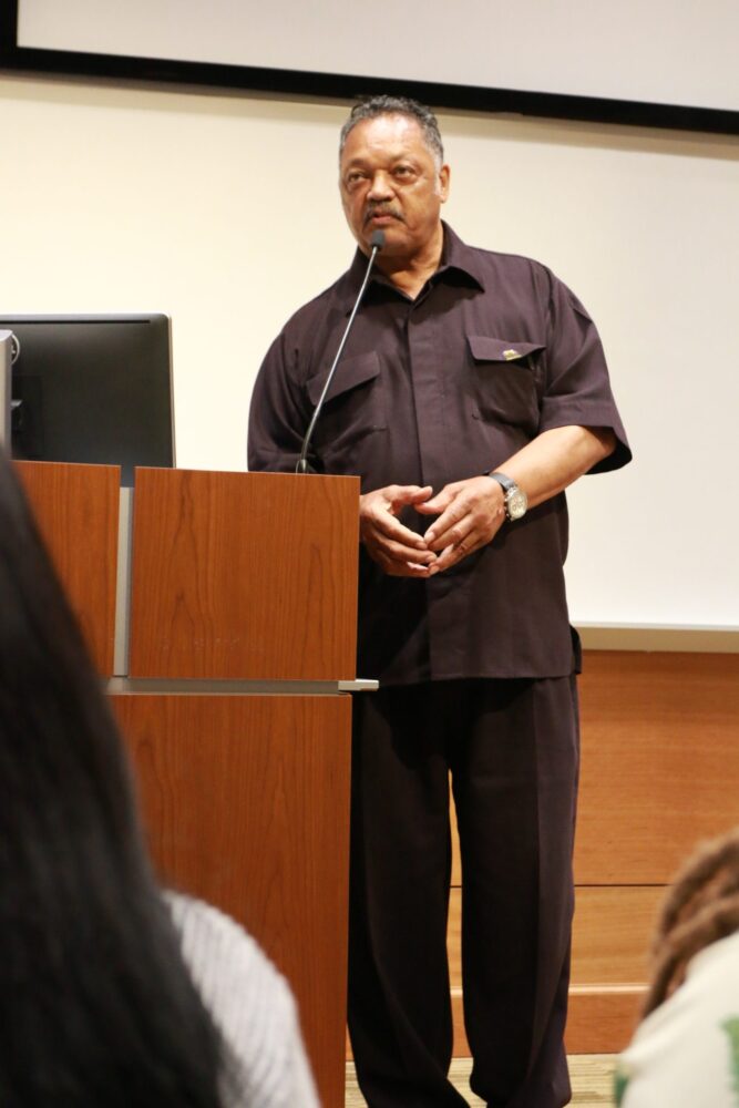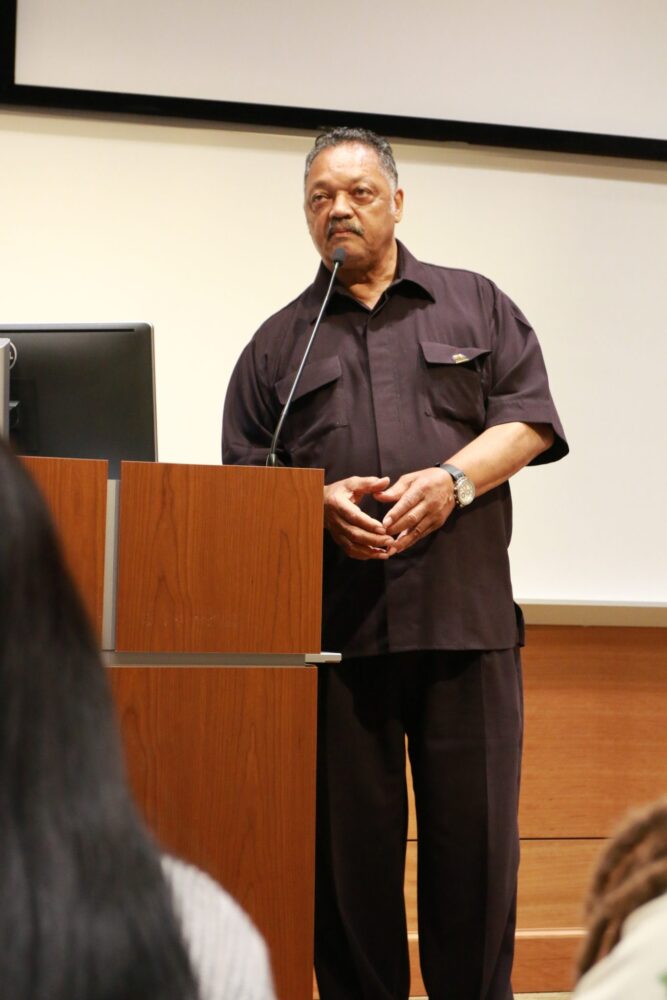 During the events scheduled at colleges, Jackson drove home the message to students and local leaders that students are potential victims of voter suppression and “voter nullification.”