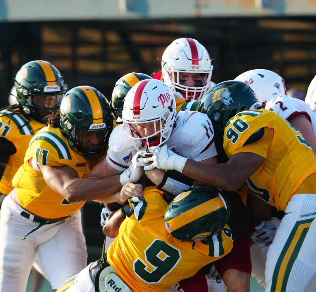 Coach Michael Vick and the NSU Spartans could not get out of their own way as they were upended by three turnovers and two missed field goals in a 31-28 loss to Sacred Heart University at Price Stadium on Saturday (September 20) in front of 8,127 fans.